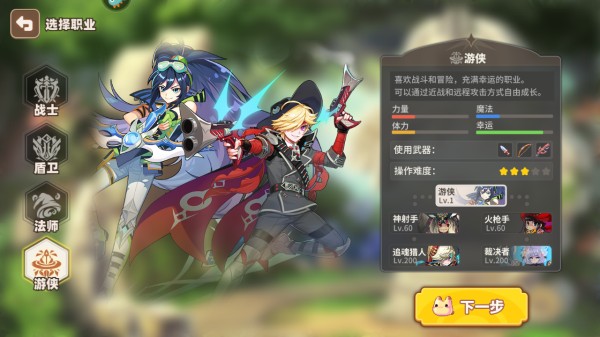 4、游侠:喜欢战斗和冒险,充满幸运的职业。可以通过近战和远程攻击方式自由成长。