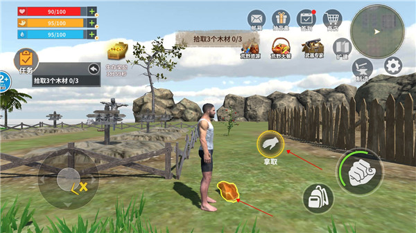 1、进入蛮荒进化生存游戏后,可以根据左边的任务来确定自己的目标。