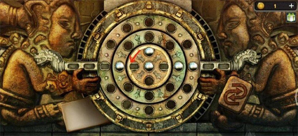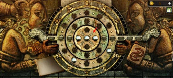 2、点击后,将圆盘和图纸放进去。放完后就要开始过排列圆球的小游戏了,可以先转动中间的圆盘。