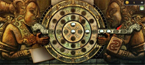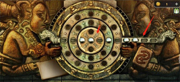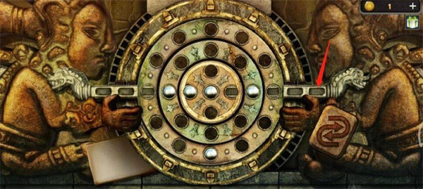 15、移完后,再将横杆往左推两格,推完后转圆盘的小游戏就通过了。