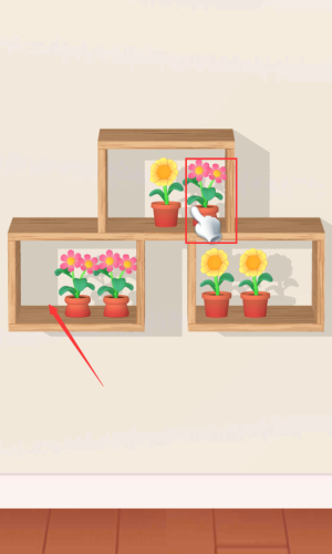 3、选择粉色花朵盆栽,进行装饰互动操作。
