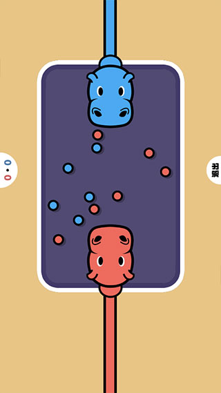 点击操控河马吃掉小球,吃到自己颜色小球时获得2分,吃到对手颜色小球时扣除1分,先得到80分获胜!