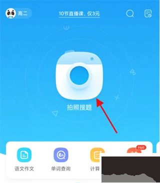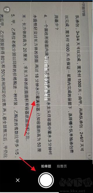 3、用手机摄像头对准题目使参考线平行于纸面文字,点击拍摄按钮。